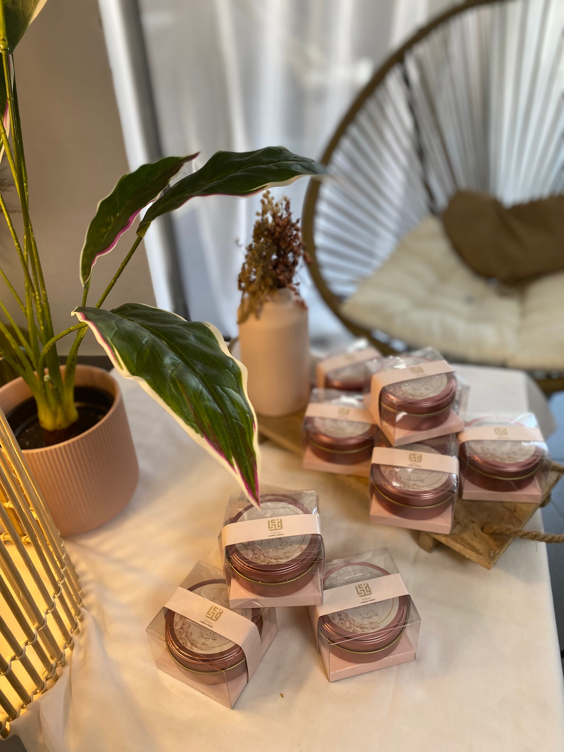 شمعة بتصميم خاص ، قُطر الشمعه 7cm العلبه عرض 8 ارتفاع 4