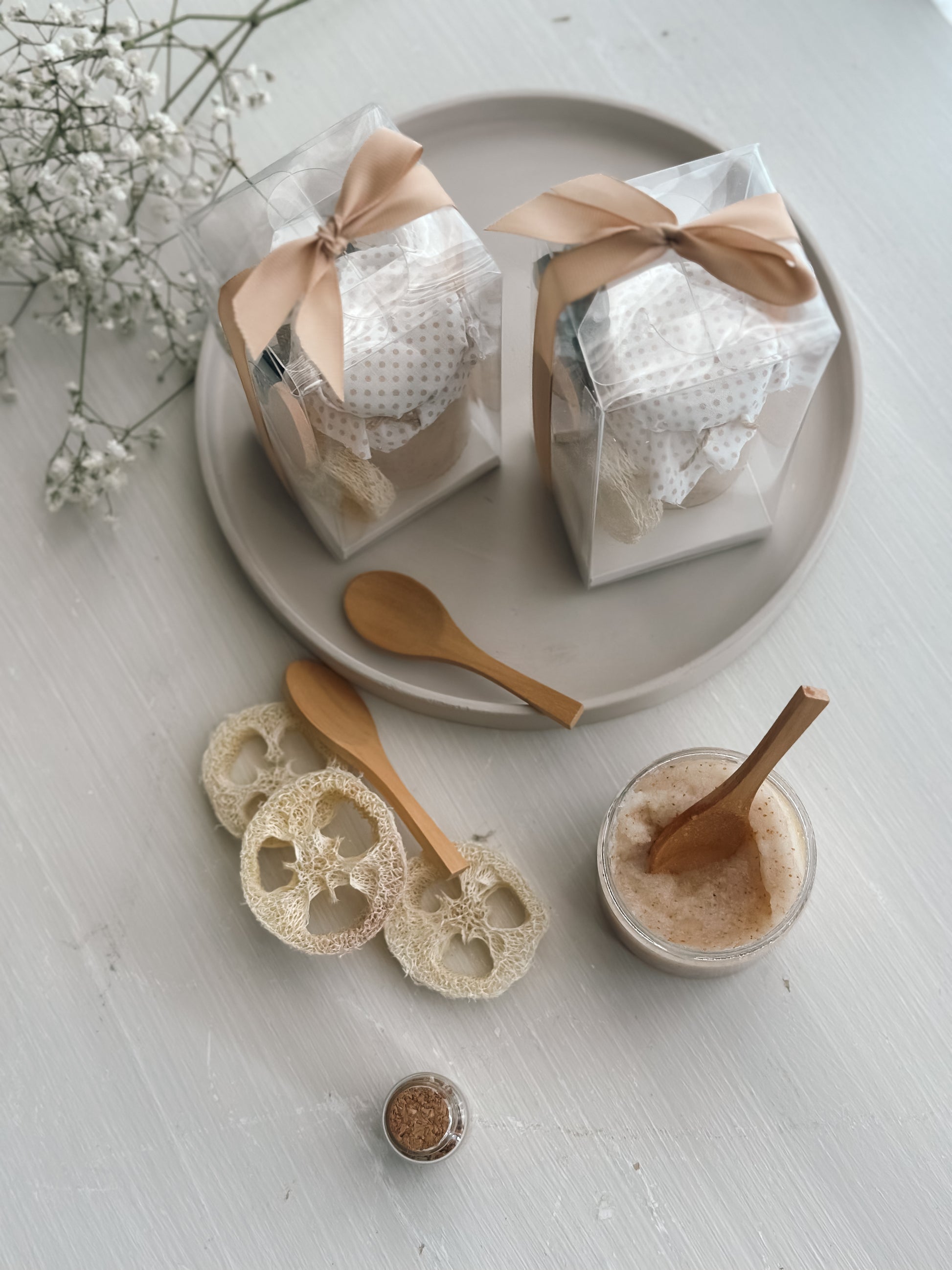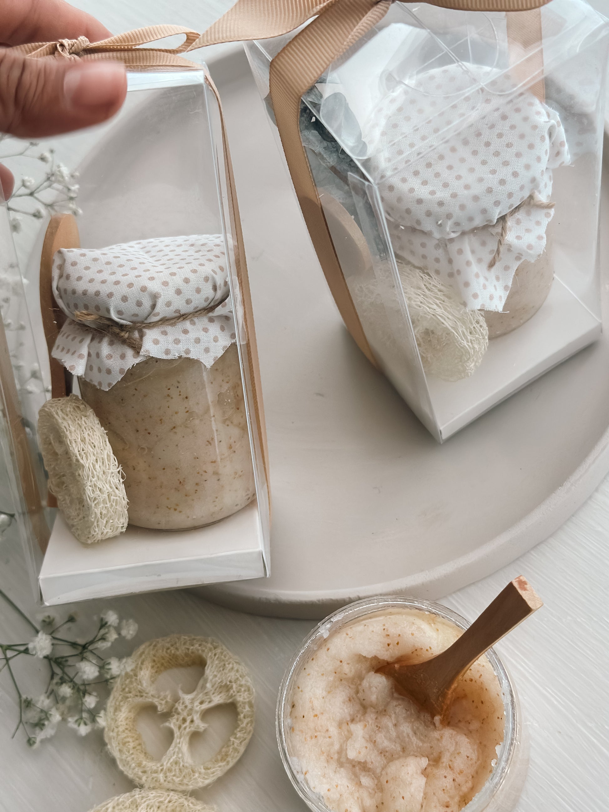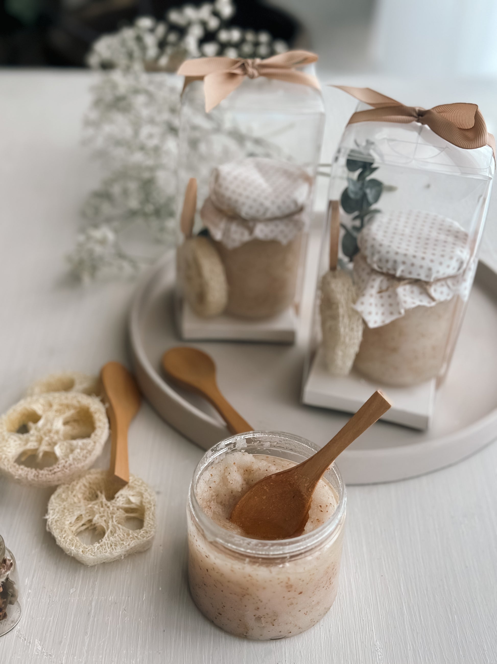 توزيعة جميلة ومستغله ، مقشر للجسم برائحة الرمان والمسك